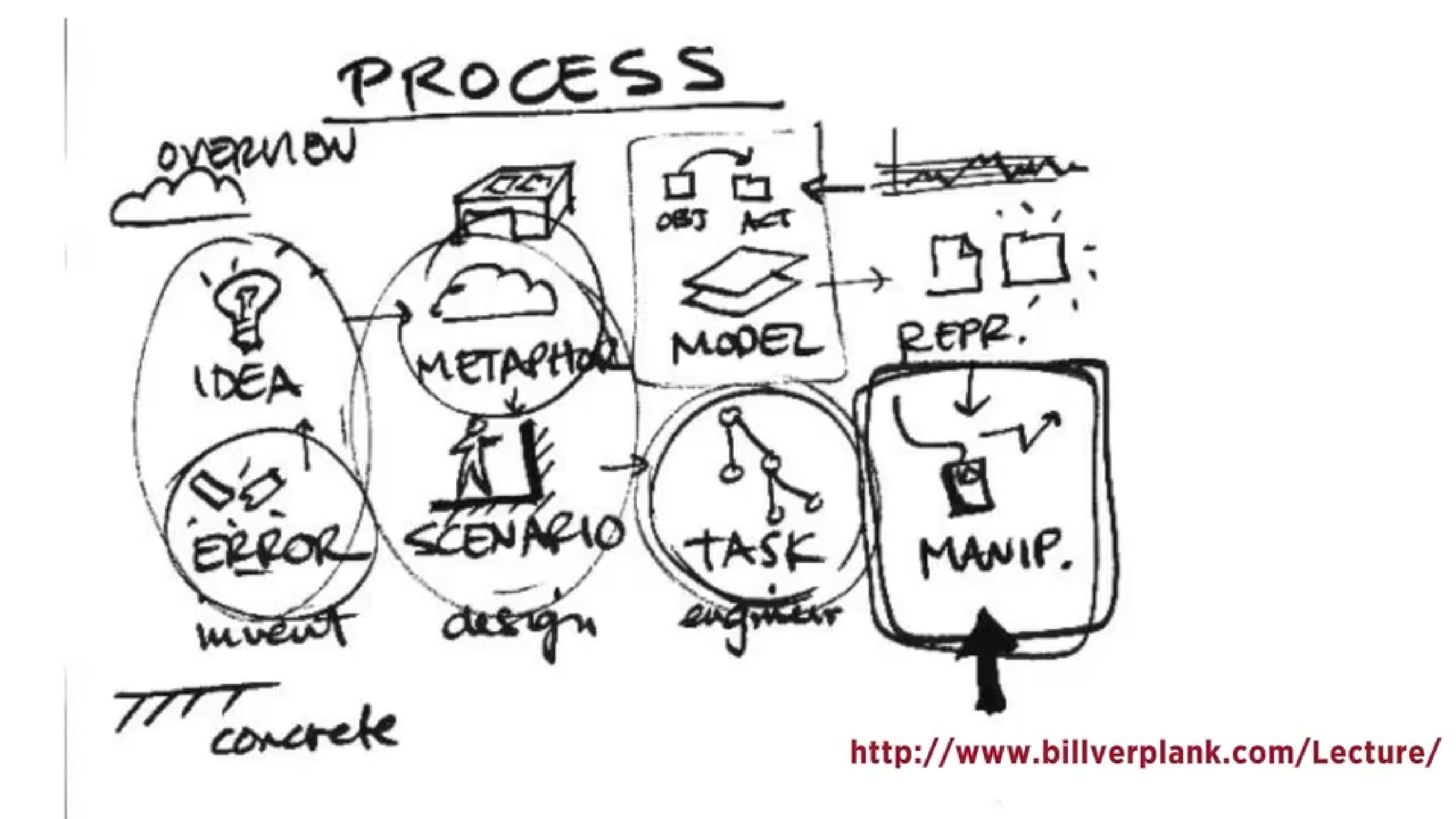 Bill Verplank identifies that there are eight phases in the design process. The invent stage includes error, idea, metaphor, scenario development, task analysis and modelling, representation then interactive manipulation.